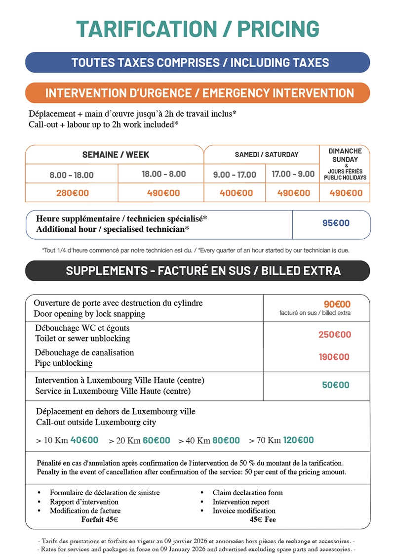 Nos plombiers sont disponibles pour les urgences dans tout le Luxembourg.